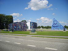 Carl-Henning Pedersen & Else Alfelts Museum in Birk outside Herning, Denmark. The museum was designed by C.F. Møller (1898-1988) in 1976. Notorious for resisting selling his works, Pedersen donated thousands to the Carl-Henning Pedersen and Else Alfelt Museum. The museum houses a collection of the artist couple Carl-Henning Pedersen and Else Alfelt's paintings, watercolors, sculptures, mosaics.