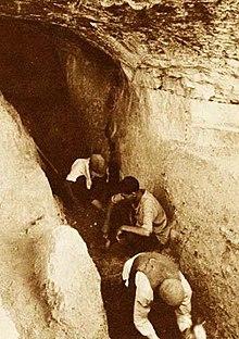 After taking up his position at Pennsylvania in 1948, Coon embarked on a series of archaeological expeditions to Iran, Afghanistan and Syria.[41] His 1949 excavations at four cave sites in Iran (Bisitun, Tamtama, Khunik and Belt) were the first systematic investigations of Palaeolithic archaeology in Iran.[41][42] The most significant of these was Bisitun, which Coon called "Hunter's Cave", where he discovered evidence of the Mousterian industry[41] and several human fossils that were later confirmed to belong to Neanderthals.[43] Coon published the results of these excavations in a 1951 monograph, Cave Explorations in Iran, 1949,[44][45] and subsequently wrote a popular book about the expeditions, The Seven Caves: Archaeological Explorations in the Middle East (1957).[46] Bisitun remained the only fully-published Palaeolithic site from Iran for several decades.[41][42]