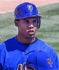 At just 16 years of age, Gómez signed with the New York Mets as an international free agent on July 27, 2002. Along with Fernando Martínez, Gómez was considered one of their top outfield prospects, and was considered to be a five-tool prospect. While they were teammates, Mets shortstop José Reyes, who led the National League in stolen bases and triples for multiple seasons, said that Gómez was faster than he was.[2] In fact, while he and Gómez were teammates with the Mets, Gómez routinely beat him in foot races during spring training.[3]
