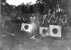 Carlson and the two companies, with Company B leading, marched west towards the village of Asamana on the Metapona River. While crossing the river, the Marines captured two Japanese soldiers and killed a third who happened by in a native boat, then attacked and occupied Asamana, surprising and killing several Japanese soldiers in the village. Signs in Japanese in the village indicated that it was being used as a rallying location for Shōji's forces. Occupying defensive positions around the village and river crossing, the raiders killed 25 Japanese soldiers that approached the village during the remainder of the day.[24]