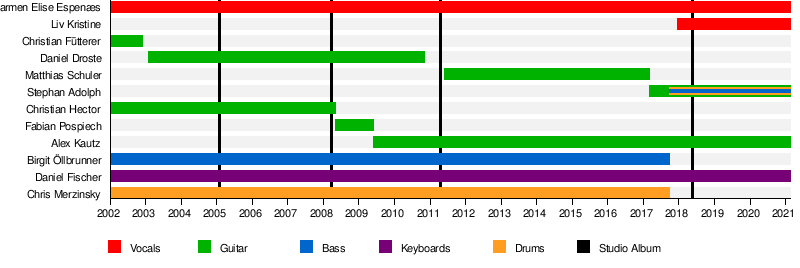 | Past members | Christian FüttererChristian HectorFabian "Fabz" PospiechDaniel DrosteBirgit ÖllbrunnerMatthias SchulerChris Merzinsky |