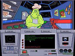 The intention of this game is to teach astronomy. The player flies in a rocket ship throughout the solar system, interrogating various alien lifeforms in order to solve the theft of an important part of the solar system (e.g. Saturn's rings). There was only a limited amount of fuel available for travel. So if the player did not ask the right questions on the right planets, or followed the wrong clues, the criminal(s) would get away, leaving the player to start anew with another crime. This version is somewhat similar to Where in the World Is Carmen Sandiego?. Kneemoi was introduced in this installment.