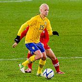 | Caroline Seger playing for Sweden in the 2–0 victory against Iceland in Växjö, Sweden in April 2013 | |||||||||||||||||||||||||
