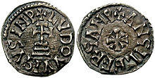 Louis the Pious’ reign lacked security; he often had to struggle to maintain control of the Empire. As soon as he heard of the death of Charlemagne, he hurried to Aachen, where he exiled many of Charlemagne's trusted advisors, such as Wala. Wala and his siblings were children of the youngest son of Charles Martel, and so were a threat as a potential alternative ruling family.[12] Monastic exile was a tactic Louis used heavily in his early reign to strengthen his position and remove potential rivals.[12] In 817 his nephew, King Bernard of Italy, rebelled against him due to discontent with being the vassal of Lothar, Louis’ eldest son.[13] The rebellion was quickly put down by Louis, and by 818 Bernard of Italy was captured and punished - the punishment of death was commuted to blinding. However, the trauma of the procedure ending up killing him two days later.[14] Italy was brought back into Imperial control. In 822 Louis' show of penance for Bernard's death greatly reduced his prestige as Emperor to the nobility – some suggest it opened him up to ‘clerical domination’.[15] Nonetheless, in 817 Louis had established three new Carolingian kingships for his sons from his first marriage: Lothar was made King of Italy and co-Emperor, Pepin was made King of Aquitaine, and Louis the German was made King of Bavaria. His attempts in 823 to bring his fourth son (from his second marriage), Charles the Bald into the will was marked by the resistance of his eldest sons. Whilst this was part of the reason for strife amongst Louis’ sons, some suggest that it was the appointment of Bernard of Septimania as chamberlain which caused discontent with Lothar, as he was stripped of his co-Emperorship in 829 and was banished to Italy (although it is not known why; The Astronomer simply states that Louis 'dismissed his son Lothar to go back to Italy'[16]) and Bernard assumed his place as second in command to the emperor.[12] With Bernard's influence over not only the emperor, but the empress as well, further discord was sowed amongst prominent nobility. Pepin, Louis’ second son, too, was disgruntled; he had been implicated in a failed military campaign in 827, and he was tired of his father's overbearing involvement in the ruling of Aquitaine.[12] As such, the angry nobility supported Pepin, civil war broke out during Lent in 830, and the last years of his reign were plagued by civil war.
