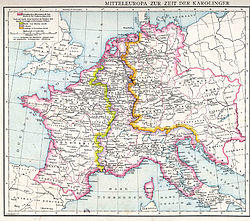 ![]() The Carolingian Empire at its greatest extent in 814
