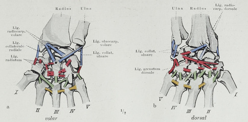 There are four groups of ligaments in the region of the wrist:[8]