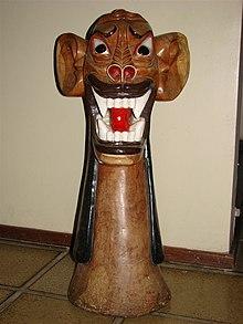 A carranca (Portuguese, literally "scowl" with another definition as "figurehead";[1] Portuguese pronunciation: [kaˈʁɐ̃kɐ]) is a type of figurehead attached to river craft which is attributed with power to protect the boatmen from the river's evil spirits. The culture in Brazil incorporated elements of the indigenous culture, so that the idea of river spirits and forest spirits can help or hinder a crossing is also natural of the Amerindian imaginary.[2] They were once commonly found on the lower Rio São Francisco in Brazil's Northeast Region (Nordeste). The carranca is most commonly a figure of a human or an animal. They were used to identify traders operating on the São Francisco and, as with ancient figureheads, serve the superstitious as guardians on the river.[3]