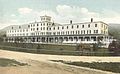 But it is tourism that brought fame and prosperity to the area. Hannah and Abel Crawford turned their log cabin into an inn, then built The Notch House in 1828. In 1874, the Boston, Concord & Montreal Railroad reached Fabyan Station, an important junction joined the next year by the Portland & Ogdensburg Railroad. Here stood the Fabyan House, a grand hotel built by Sylvester Marsh and his colleagues, who also built the nearby Mount Washington Cog Railway.[7] The hotel burned in 1951. The Mount Pleasant House was built in 1875, although demolished in 1939. But the grandest of all was the Mount Washington Hotel, built in 1902 and still operating. Here was held the 1944 International Monetary Conference, which resulted in the creation of the International Monetary Fund and World Bank.[4]
