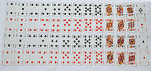 An illustrative example is the standard 52-card deck. The standard playing card ranks {A, K, Q, J, 10, 9, 8, 7, 6, 5, 4, 3, 2} form a 13-element set. The card suits {♠, ♥, ♦, ♣} form a four-element set. The Cartesian product of these sets returns a 52-element set consisting of 52 ordered pairs, which correspond to all 52 possible playing cards.