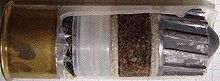 Paper cartridges have been in use for centuries, with a number of sources dating their use back to the late 14th century. Historians note their use by soldiers of Christian I, Elector of Saxony and his son in the late 16th century,[11][12] while the Dresden Armoury has evidence dating their use to 1591.[13][11] Capo Bianco wrote in 1597 that paper cartridges had long been in use by Neapolitan soldiers. Their use became widespread by the 17th century.[11] The 1586 cartridge consisted of a charge of powder and a bullet in a paper tube. Thick paper is still known as "cartridge paper" from its use in these cartridges.[14] Another source states the cartridge appeared in 1590.[15] King Gustavus Adolphus of Sweden had his troops use cartridges in the 1600s.[16] The paper formed a cylinder with twisted ends; the ball was at one end, and the measured powder filled the rest.[17]