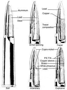 A cartridge or a round is a type of pre-assembled firearm ammunition packaging a projectile (bullet, shot or slug), a propellant substance (usually either smokeless powder or black powder) and an ignition device (primer) within a metallic, paper or plastic case that is precisely made to fit within the barrel chamber of a breechloading gun, for the practical purpose of convenient transportation and handling during shooting.[1] Although in popular usage the term "bullet" is often used to refer to a complete cartridge, it is correctly used only to refer to the projectile.