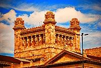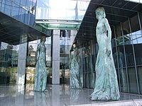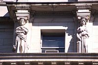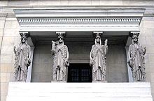 In 1905 American sculptor Augustus Saint Gaudens created a caryatid porch for the Albright-Knox Art Gallery in Buffalo, New York in which four of the eight figures (the other four figures holding only wreaths) represented a different art form, Architecture, Painting, Sculpture, and Music.[9]