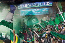 The Seattle Sounders of the USL-1 were made defunct in 2009 due to the introduction of the MLS expansion franchise of the same name. In 2009, it was announced that expansion teams would be allotted to Vancouver and Portland. Both teams were named after their predecessors, ensuring the continuation of the rivalry.[10] Supporters of the Timbers and Whitecaps decided to continue the Cascadia Cup without the Sounders for two years while playing in the USL. In 2009, supporters of the Timbers and Whitecaps only included regular season USL-1 matches played between the teams and Portland won the cup for the first time.[1] Some Sounders supporters wished to include a preseason victory over Vancouver and a US Open Cup match win at Portland for consideration in the cup standings while others believed that the Cascadia Cup competition should be suspended until 2011. Portland won the Cup for a second consecutive year in 2010.[11]