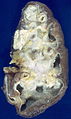 Caseous necrosis or caseous degeneration[1] (/ˈkeɪsiəs/)[2] is a unique form of cell death in which the tissue maintains a cheese-like appearance.[3] It is also a distinctive form of coagulative necrosis.[4] The dead tissue appears as a soft and white proteinaceous dead cell mass.