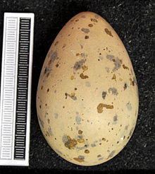 Breeding is in spring and summer, with one to three pale blue green eggs, with heavy brown spotting, being laid. They nest either together in colonies, or singly in mixed colonies of other tern and gull species. The nest is on the ground among gravel and sand, or sometimes on vegetation; incubation lasts for 26–28 days. The chicks are variable in plumage pattern, from pale creamy to darker grey-brown; this variation assists adults in recognizing their own chicks when returning to the colony from feeding trips. Fledging occurs after 35–45 days.[3]