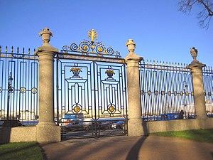As soon as improvements in techniques led to finer castings, designers exploited the decorative possibilities. As early as 1775, noted architect Robert Adam joined with the Scottish Carron Company iron works to produce balcony railings in imitation of wrought iron, such as the railing for the Adelphi in London (a pattern that was still produced into the 1830s).[6] Another very early large scale example is the delicate fence of the Summer Garden in Saint Petersburg, designed by Georg Von Veldten, built between 1771 and 1784, which also imitated wrought iron, and is considered the pinnacle of cast iron design in the city. Other well known architects were early adopters of the material; John Nash employed cast iron as part of the structure of his landmark 1820s Royal Pavilion in Brighton, and German architect Karl Friedrich Schinkel was an enthusiastic early adopter, using cast iron for memorials such as the 20m tall Gothic Revival Kreuzberg War Memorial in 1821, and the delightful nautical seahorses and mermaids in the balustrade of the 1820s Castle Bridge in Berlin.