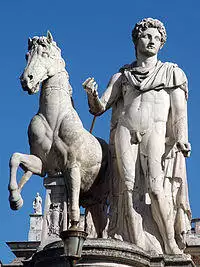 The Romans believed that the twins aided them on the battlefield.[3] Their role as horsemen made them particularly attractive to the Roman equites and cavalry. Each year on July 15, Feast Day of the Dioskouroi, 1,800 equestrians would parade through the streets of Rome in an elaborate spectacle in which each rider wore full military attire and whatever decorations he had earned.[36]