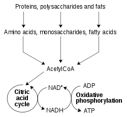 Catabolism (/kəˈtæbəlɪsm/) is the set of metabolic pathways that breaks down molecules into smaller units that are either oxidized to release energy or used in other anabolic reactions.[1] Catabolism breaks down large molecules (such as polysaccharides, lipids, nucleic acids, and proteins) into smaller units (such as monosaccharides, fatty acids, nucleotides, and amino acids, respectively). Catabolism is the breaking-down aspect of metabolism, whereas anabolism is the building-up aspect.
