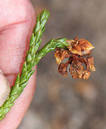 In plant morphology, a cataphyll (sometimes also called a cataphyllum,[1] or cataphyll leaf[2]) is a reduced, small leaf.[3][4] Many plants have both "true leaves" (euphylls) which perform the majority of photosynthesis, and cataphylls that are modified to perform other specialized functions.[5] Cataphylls include bracts, bracteoles, and bud scales, as well as any small leaves that resemble scales, which are known as scale leaves.[3][4] Some cataphylls have a primary function other than photosynthesis. The functions of cataphylls such as bud scales may be short-lived and they are often shed after the need for them is past.