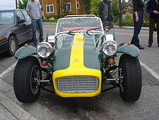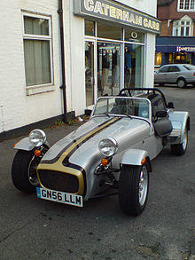 Caterham Cars is a British manufacturer of specialist lightweight sports cars established in Caterham, Surrey, with their headquarters in Crawley, Sussex. Their current model, the Caterham 7 (or Seven), originally launched in 1973, is a direct evolution of the Series 3 Lotus Seven designed by Colin Chapman. In the 1990s the company made the Caterham 21, a two-seater soft top alternative to the MGF and Lotus Elise, (which both sold many more units). A track-only car, the SP/300.R, a joint project with Lola was released for customer testing in 2010 and was scheduled for release in 2013. On 27 April 2011, Team Lotus owner Tony Fernandes announced that he had purchased Caterham.[1][2]