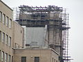 Construction on the south tower resumed for some years in the 1980s, during which campaign another 50 feet (15 m) of height was added,[3] in limestone rather than the granite of the original construction. Following the abandonment of this initiative, the scaffolding that had been erected around the south tower remained, rusting away (until it was removed in the summer of 2007).