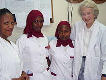 Hamlin's efforts to end fistula saw her lead a program of preventing obstetric fistulas through Ethiopia; she believed that midwifery was key to preventing fistulas from occurring in the first place. Hamlin argued that "to put a well trained midwife in every village would soon eradicate obstetric fistulae."[10] In 2007 she founded the Hamlin College of Midwives. Hamlin Fistula Ethiopia recruits students from rural areas, provides a full four-year scholarship for students as they gain their Bachelor of Science (Midwifery) degree. Upon their graduation, students are deployed back to their communities where their skills are needed. As of November 2019, 170 midwives have graduated from the College; 92 are currently studying.[11] Hamlin Fistula Ethiopia has partnered with the Ethiopian government to provide resources and midwives who have graduated from the Hamlin College of Midwives, to 80 government midwifery clinics across regional Ethiopia.