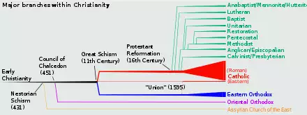In 1438, the Council of Florence convened, which featured a strong dialogue focussed on understanding the theological differences between the East and West, with the hope of reuniting the Catholic and Orthodox churches.[14] Several eastern churches reunited, constituting some of the Eastern Catholic Churches.