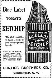 Tomato ketchup was sold locally by farmers. Jonas Yerkes is credited as the first American to sell tomato ketchup in a bottle.[16] By 1837, he had produced and distributed the condiment nationally.[17] Shortly thereafter, other companies followed suit. F. & J. Heinz launched their tomato ketchup in 1876.[18] Heinz Tomato Ketchup was advertised: "Blessed relief for Mother and the other women in the household!", a slogan which alluded to the lengthy process required to produce tomato ketchup in the home.[19] With industrial ketchup production and a need for better preservation there was a great increase of sugar in ketchup, leading to our modern sweet and sour formula.[11] In Australia, it wasn't until the late 19th century that sugar was added to tomato sauce, initially in small quantities, but today it contains just as much as American ketchup and only differed in the proportions of tomatoes, salt and vinegar in early recipes.[20]