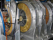 On the beamline of an accelerator system, there are specific sections that are cavity resonators for RF. The (charged) particles that are to be accelerated pass through these cavities in such a way that the microwave electric field transfers energy to the particles, thus increasing their kinetic energy and thus accelerating them. Several large accelerator facilities employ superconducting niobium cavities for improved performance compared to metallic (copper) cavities.