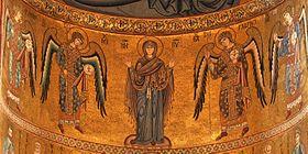 It was probably planned that the entire church be decorated in mosaic, but this was completed only in the presbyterium area. Mosaic still covers the apse and about half of the side walls. Roger II brought masters in the technique of mosaic from Constantinople. They adapted their traditional Byzantine decorative art to an architectural structure that was of northern European origin.