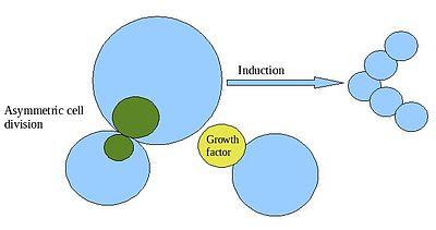 Among dividing cells, there are multiple levels of cell potency, the cell's ability to differentiate into other cell types. A greater potency indicates a larger number of cell types that can be derived. A cell that can differentiate into all cell types, including the placental tissue, is known as totipotent. In mammals, only the zygote and subsequent blastomeres are totipotent, while in plants, many differentiated cells can become totipotent with simple laboratory techniques. A cell that can differentiate into all cell types of the adult organism is known as pluripotent. Such cells are called meristematic cells in higher plants and embryonic stem cells in animals, though some groups report the presence of adult pluripotent cells. Virally induced expression of four transcription factors Oct4, Sox2, c-Myc, and Klf4 (Yamanaka factors) is sufficient to create pluripotent (iPS) cells from adult fibroblasts.[4] A multipotent cell is one that can differentiate into multiple different, but closely related cell types.[5] Oligopotent cells are more restricted than multipotent, but can still differentiate into a few closely related cell types.[5] Finally, unipotent cells can differentiate into only one cell type, but are capable of self-renewal.[5] In cytopathology, the level of cellular differentiation is used as a measure of cancer progression. "Grade" is a marker of how differentiated a cell in a tumor is.[6]