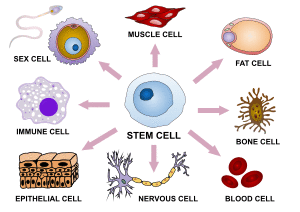 Cellular differentiation is the process in which a cell changes from one cell type to another.[2][3] Usually, the cell changes to a more specialized type. Differentiation occurs numerous times during the development of a multicellular organism as it changes from a simple zygote to a complex system of tissues and cell types. Differentiation continues in adulthood as adult stem cells divide and create fully differentiated daughter cells during tissue repair and during normal cell turnover. Some differentiation occurs in response to antigen exposure. Differentiation dramatically changes a cell's size, shape, membrane potential, metabolic activity, and responsiveness to signals. These changes are largely due to highly controlled modifications in gene expression and are the study of epigenetics. With a few exceptions, cellular differentiation almost never involves a change in the DNA sequence itself. Thus, different cells can have very different physical characteristics despite having the same genome.