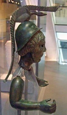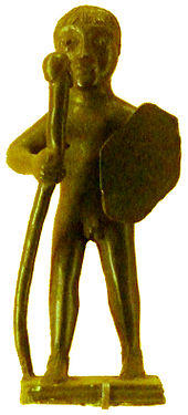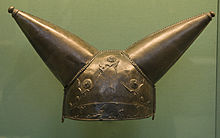 The Canegrate culture represented the first migratory wave of the proto-Celtic[82][83] population from the northwest part of the Alps that, through the Alpine passes, had already penetrated and settled in the western Po valley between Lake Maggiore and Lake Como (Scamozzina culture). It has also been proposed that a more ancient proto-Celtic presence can be traced back to the beginning of the Middle Bronze Age, when North Westwern Italy appears closely linked regarding the production of bronze artefacts, including ornaments, to the western groups of the Tumulus culture.[84] La Tène cultural material appeared over a large area of mainland Italy,[85] the southernmost example being the Celtic helmet from Canosa di Puglia.[86]