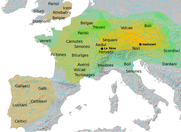 According to another theory proposed in the 19th century, the first people to adopt cultural characteristics regarded as Celtic were the people of the Iron Age Hallstatt culture in central Europe (c. 800–450 BC), named for the rich grave finds in Hallstatt, Austria.[10][11] It is thus that this area is sometimes called the "Celtic homeland". By or during the later La Tène period (c. 450 BC to the Roman conquest), named after the La Tène site in Switzerland, this Celtic culture was supposed to have expanded by trans-cultural diffusion or migration to the British Isles (Insular Celts), France and the Low Countries (Gauls), Bohemia, Poland and much of Central Europe, the Iberian Peninsula (Celtiberians, Celtici, Lusitanians and Gallaeci) and northern Italy (Golasecca culture and Cisalpine Gauls)[12] and, following the Celtic settlement of Southeast Europe beginning in 279 BC, as far east as central Anatolia (Galatians) in modern-day Turkey.[13]