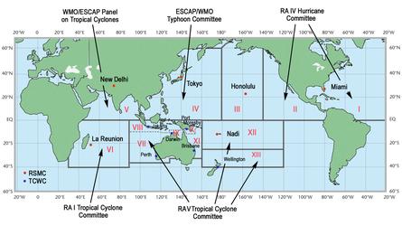 The CPHC's area of responsibility is the Central Pacific (CP) region, which is an administrative region, not a meteorological one. It is not a tropical cyclone basin (a distinct area where cyclones form), but is still often referred to as the Central Pacific basin or Central North Pacific basin. The western edge of the area of responsibility, 180°W, is formally the antimeridian, though this coincides with the International Date Line for tropical latitudes, and thus these are often conflated. Meteorologically, this region covers the western part of the Eastern Pacific basin and the eastern part of the Western Pacific basin, though administratively the National Hurricane Center is responsible for the Eastern Pacific basin east of 140°W, and thus the Eastern Pacific region (EP) typically refers to region east of 140°W, not the whole meteorological basin. The region east of 140°W was formerly the responsibility of the Eastern Pacific Hurricane Center; like the CPHC, it took responsibility in 1970, but it is now folded into the NHC.