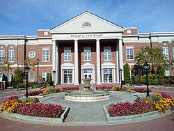 The first of Central Piedmont's satellite campuses, it was opened in 1990 as the North Center, eventually growing with the addition of the Public Safety building in 1996 and being renamed the North Campus.[18] The campus is located north of Charlotte, in Huntersville, North Carolina. This campus is home to the College's Public Safety and Transportation Systems programs. In 2011 the College renamed the campus to the Merancas Campus, after longtime donor's Casey and Anke Mermans and their Merancas Foundation.[19]