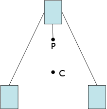 An experimental method for locating the center of mass is to suspend the object from two locations and to drop plumb lines from the suspension points. The intersection of the two lines is the center of mass.[13]