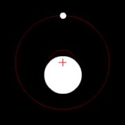 The center of mass plays an important role in astronomy and astrophysics, where it is commonly referred to as the barycenter. The barycenter is the point between two objects where they balance each other; it is the center of mass where two or more celestial bodies orbit each other. When a moon orbits a planet, or a planet orbits a star, both bodies are actually orbiting a point that lies away from the center of the primary (larger) body.[21] For example, the Moon does not orbit the exact center of the Earth, but a point on a line between the center of the Earth and the Moon, approximately 1,710 km (1,062 miles) below the surface of the Earth, where their respective masses balance. This is the point about which the Earth and Moon orbit as they travel around the Sun. If the masses are more similar, e.g., Pluto and Charon, the barycenter will fall outside both bodies.