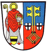 St. Valerie of Limoges presents her head to her bishop and confessor, Saint Martial; Church of St. Michel des Lions, Limoges