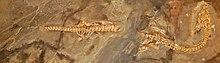 Ceresiosaurus is an extinct aquatic genus of lariosaurine nothosaurid sauropterygian known from the Middle Triassic (Anisian-Ladinian boundary) of Monte San Giorgio, southern Switzerland and northern Italy. Ceresiosaurus, meaning "Lizard of Ceresio" (Ceresio is the name of the Lake Lugano, in Switzerland). The type species, Ceresiosaurus calcagnii, was named by Bernhard Peyer in 1931. C. calcagnii is known from both the Cava superiore and Cava inferiore beds of the Lower Meride Limestone at Monte San Giorgio, dating to the latest Anisian of the Middle Triassic.[1] Rieppel (1998) suggested that the back then monospecific genus Ceresiosaurus, is a junior synonym of the better known Lariosaurus, yet he kept it type species as a separate species under the new combination L. calcagnii.[2] In 2004, however, this synonymy was objected by Hänni who described and name a second species of Ceresiosaurus, C. lanzi - a separation supported by several other authors since. This species is known only from the stratigraphically younger Cassima beds of Monte San Giorgio, although also from the Lower Meride Limestone, dating to possibly the lowest Ladinian age. The species in a subtropical lagoonal environment with varying open marine influences, and alongside many related but smaller species of nothosaurids and pachypleurosaurids. Ceresiosaurus represents one of the largest vertebrate of up to 3 m snout-tail length from the very diversified paleoenvironment of the Middle Triassic Monte San Giorgio.[1]
