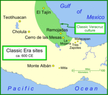 Located about 50 km (31 mi) due south of Veracruz City, Cerro de las Mesas is on the west edge of what had been the Olmec heartland. Rising to prominence after the decline of the Olmec civilization's culture, some researchers consider Cerro de las Mesas, along with similar sites like La Mojarra and Tres Zapotes, to be a center of epi-Olmec culture, a successor culture to the Olmecs, and one that itself gave way to Classic Veracruz culture in the 3rd century CE.[2]