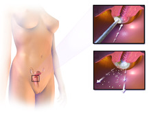 A radical trachelectomy can be performed abdominally[83] or vaginally[84] and opinions are conflicting as to which is better.[85] A radical abdominal trachelectomy with lymphadenectomy usually only requires a two- to three-day hospital stay, and most women recover very quickly (about six weeks). Complications are uncommon, although women who are able to conceive after surgery are susceptible to preterm labor and possible late miscarriage.[86] A wait of at least one year is generally recommended before attempting to become pregnant after surgery.[87] Recurrence in the residual cervix is very rare if the cancer has been cleared with the trachelectomy.[82] Yet, women are recommended to practice vigilant prevention and follow-up care including Pap screenings/colposcopy, with biopsies of the remaining lower uterine segment as needed (every 3–4 months for at least 5 years) to monitor for any recurrence in addition to minimizing any new exposures to HPV through safe sex practices until one is actively trying to conceive.
