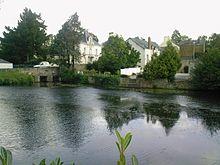 The town is built in the small drainage basin of the river Chère. Several streams flow in the Chère in Châteaubriant: the Rollard, the Choisel and the Ruisseau du Pont-Pirraud. The basin is limited by several hills belonging to the central axis of the Armorican massif which forms the Breton peninsula. The highest hill is 107 metres high.[2] Several ponds are supplied by the streams, like the Étang de Choisel and the Étang de Deil. Both were created by small dams.