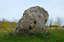 Several menhirs are visible around Châteaubriant, notably on the communes of Rougé, Treffieux, Lusanger and Saint-Aubin-des-Châteaux.[10] In Châteaubriant itself, Neolithic axes were found around the suburb of Béré. This suburb was probably founded by Gauls who exploited the small iron ore which can be found there.[11] Their ethnicity is unknown, because the region is located at the border between several Gallic people, such as the Andecavi, the Redones and the Namnetes.[12] Remains of Roman buildings were discovered in Béré in 1876, and the suburb was at the crossroads between the Roman roads linking Candé, Nantes and Rennes.[13]