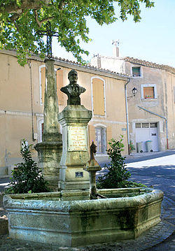 Fountain in Châteauneuf-de-Gadagne, with a bust of Alphonse Tavan, born in Châteauneuf-de-Gadagne, and one of the co-founders of Félibrige.