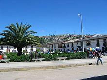 Jiron Triunfo is the street which links the three principal plazas of the city. It is called by this name because the victorious Chachapoyans of the Higos Urco battle entered the city through here.[4] Chacapoyas' transitional location between the arid Cordillera Occidental and Cordillera Central and the rainy, rainforested Cordillera Oriental, allow it to receive a generally moderate annual precipitation amount without receiving the copiously excessive, tropical-rainforest-like precipitation amounts farther east in towns such as Moyobamba.