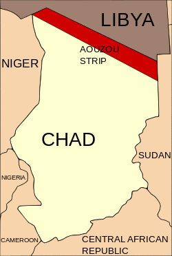 Gaddafi initially intended to annex the Aouzou Strip, the northernmost part of Chad, which he claimed as part of Libya on the grounds of an unratified treaty of the colonial period.[11] In 1972 his goals became, in the evaluation of historian Mario Azevedo, the creation of a client state in Libya's "underbelly", an Islamic republic modelled after his jamahiriya, that would maintain close ties with Libya, and secure his control over the Aouzou Strip; expulsion of the French from the region; and use of Chad as a base to expand his influence in Central Africa.[14]