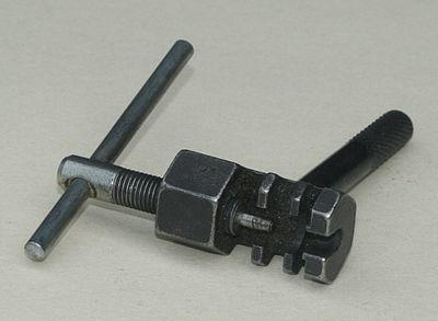 A chain tool is a small mechanical device used to "break" a bicycle chain in such a way that it can be mended with the same tool. A bicycle chain has links and plates that are pinned together; these pins can be pushed out with the chain tool. Because the pins are pushed out gradually with a screw, they can be partially removed or fully removed, depending upon the intention of the user.