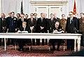 Chairman of The Joint Chiefs of Staff General David C. Jones (Second from Left, in The United States Air Force uniform) accompanying U.S. President Jimmy Carter at the signing of the SALT II treaty, in Vienna, Austira, June 18, 1979.