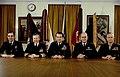 The Joint Chiefs of Staff photographed in the Joint Chiefs of Staff Gold Room, also known as "The Tank," in The Pentagon on 2001. The chairman of the Joint Chiefs of Staff Air Force General Richard B. Myers and the vice chairman of the Joint Chiefs of Staff Marine general Peter Pace seated in the middle, in between all of the service chiefs.